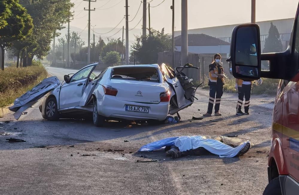 Yeniceköy Mahallesi’nden dinlenme tesisi çalışanlarını taşıyan İlker M. idaresindeki 16 AJC 797 plakalı otomobil, virajda kontrolden çıkarak beton elektrik direğine çarparak parçalara ayrıldı.