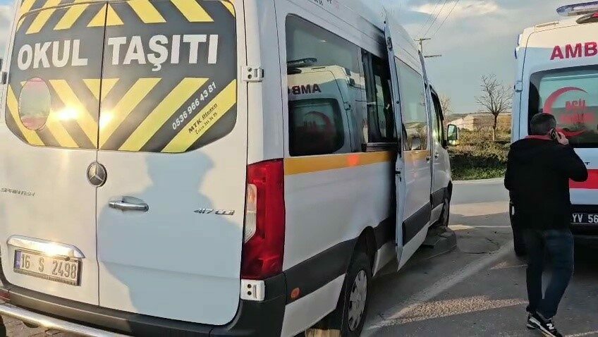 Nilüfer ilçesi Göçmen Konutları bölgesinde meydana gelen olayda, servis şoförü M.O. seyir halindeyken tansiyonunun düşmesi sonucu direksiyon hakimiyetini kaybetti.