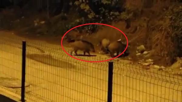 Domuzlar bir süre çöpleri karıştırdıktan sonra ormanlık alana girerek gözden kayboldu.