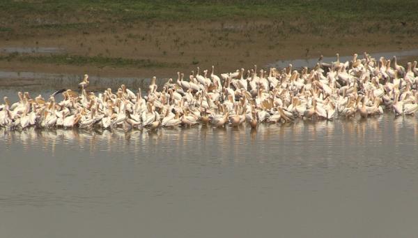 Daha önce ördek ve leyleklerin görüldüğü baraj gölünde bu kez pelikanlar boy gösterdi.