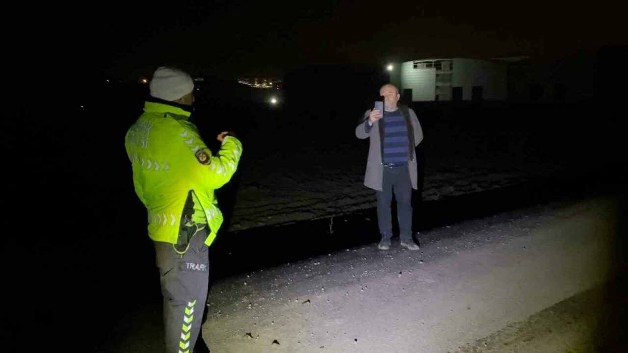 Sürücü, kaza yerine gelen polis ekiplerini görünce telefonuyla olay yerini görüntüleyip, kazayı spiker gibi anlattı. Amatör kamerasıyla kayda alan sürücü, yoldaki çalışma nedeniyle uyarı levhaları konulmamasına tepki gösterdi. Polis ekipleri sürücüye alkol testi uyguladı. 0.79 promil alkollü olduğu tespit edilen sürücüye alkollü araç kullanmaktan 9 bin 268 TL, ehliyetsiz araç kullanmaktan ise 18 bin 628 TL cezai işlem uygulandı. Sürücü ifadesi alınmak üzere karakola götürülürken, araç çekici yardımıyla yoldan kaldırıldı.
