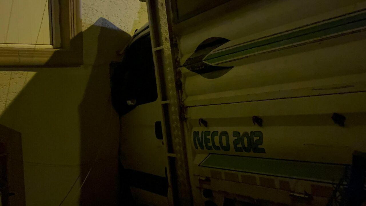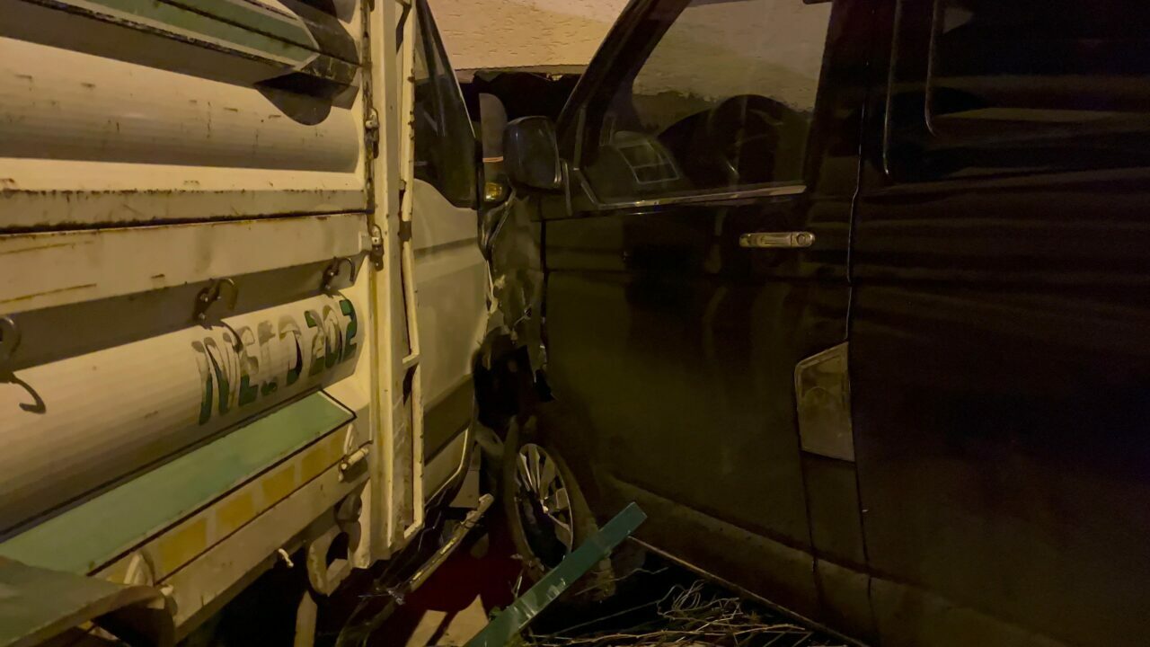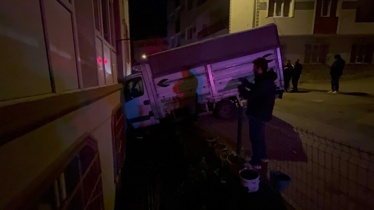 Kamyonet, önünde sürüklediği minibüsle 4 katlı apartmanın giriş katındaki dairenin salonuna girdi. Binada oturanlar gürültüyle uyanıp ihbarda bulundu.