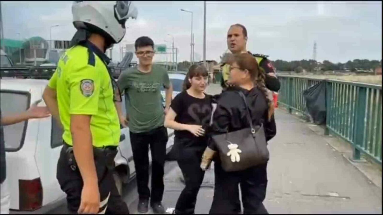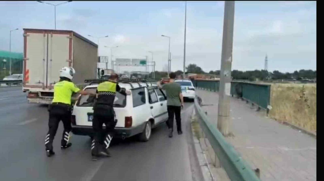 Acemler’den İzmir yönüne giden ailenin aracı arıza yaptı. Polisler aracı iterek yo kenarına taşıdı. Araçtan inen üniversite sınavına girecek genç kız gözyaşlarına boğuldu.