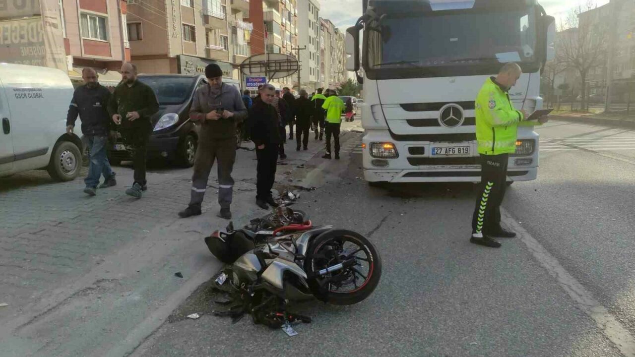 Alınan bilgilere göre, Ali K. (22) ana yol üzerinde 34 FKA 432 plakalı motosikleti ile seyir halindeyken iddiaya göre yol üzerinde tek teker üzerine kalktı. Tek teker üzerinde gitmeye çalışan motosiklet bir anda kontrolden çıkarak yol kenarına yöneldi ve park halindeki 17 VU 858 plakalı minibüse çarptı. Motosiklet ise savrulup ana yolda seyir halinde olan bir tırın önüne düştü. TIR son anda durabildi.