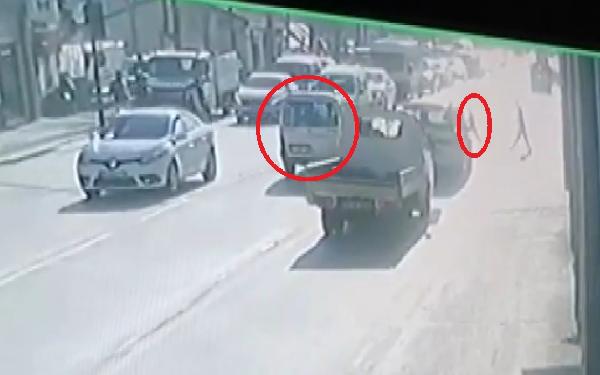 Öte yandan kaza anı bir iş yerinin güvenlik kamerasınca anbean kaydedildi. Görüntülere; araç trafiğine kırmızı ışık yandığı, araçların bu nedenle durduğu, yayaların kendilerine yanan yeşil ışık sonra karşıya geçmek için yürüdüğü, kırmızı ışıkta geçen hafif ticari aracın çocuğa çarptığı ve çocuğun yere savrulduğu anlar yansıdı.