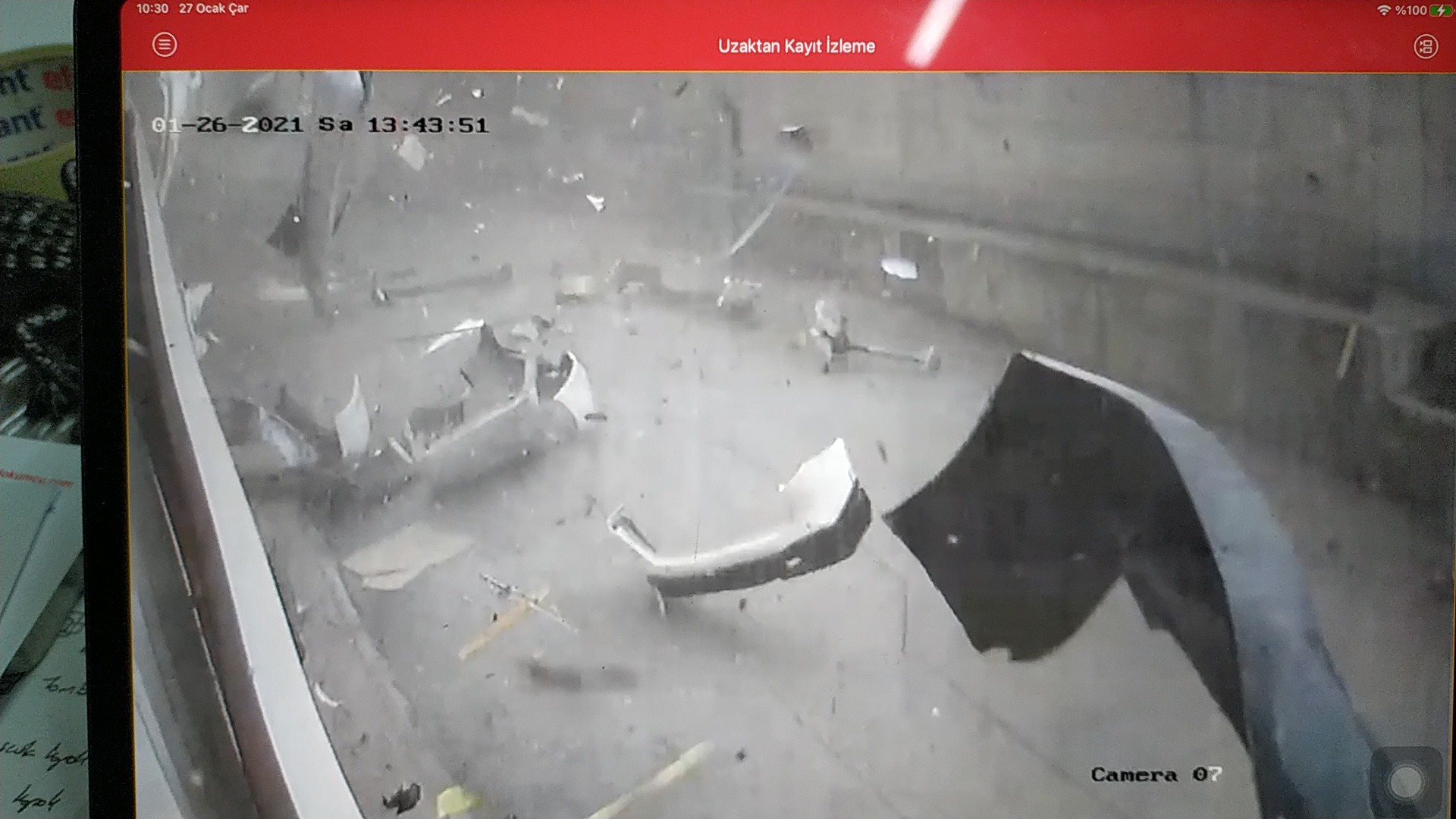 40 saniye süren hortumun şiddeti zarar gören iş yerlerinin güvenlik kameralarına yansıyan görüntülerden bir kez daha gözler önüne serildi. Kamera görüntülerinde daha çok çatı ve teraslara bırakılan hurda metal malzemelerin havalanıp etrafa yayılması dikkat çekti. Birden gelen ve 40 saniye süren hortumun etrafı savaş alanına çevirdiği anlar ve sanayi sitesindeki çalışanların panik ve kaçışma anları da kameralara anbean yansıdı.