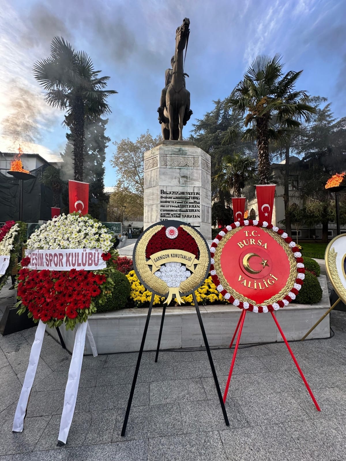 Yeşim Spor Kulübü oyuncuları ve teknik heyeti, 10 Kasım Atatürk’ü Anma Günü kapsamında Bursa Heykel Atatürk Caddesi’nde bulunan Atatürk Anıtı’na çelenk sundu.