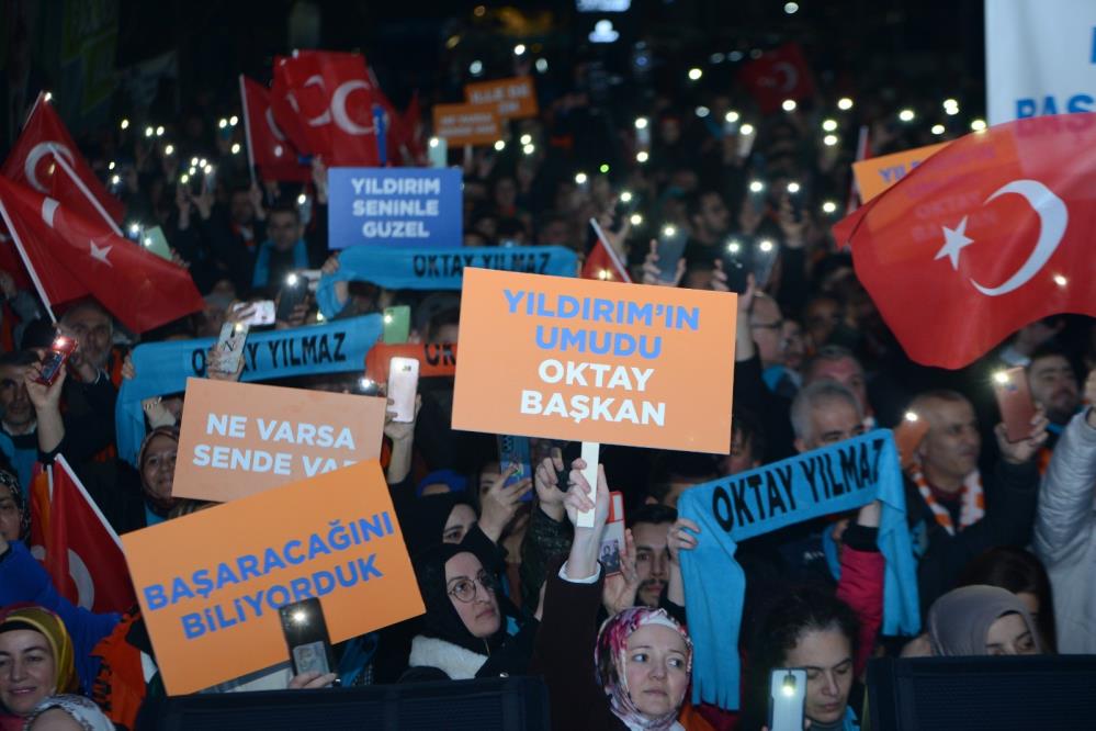 Soğuk havaya aldırış etmeyen yüzlerce Yıldırımlı Başkan Oktay Yılmaz’ı davul zurna eşliğinde sloganlarla, meşale gösterileriyle karşıladı.