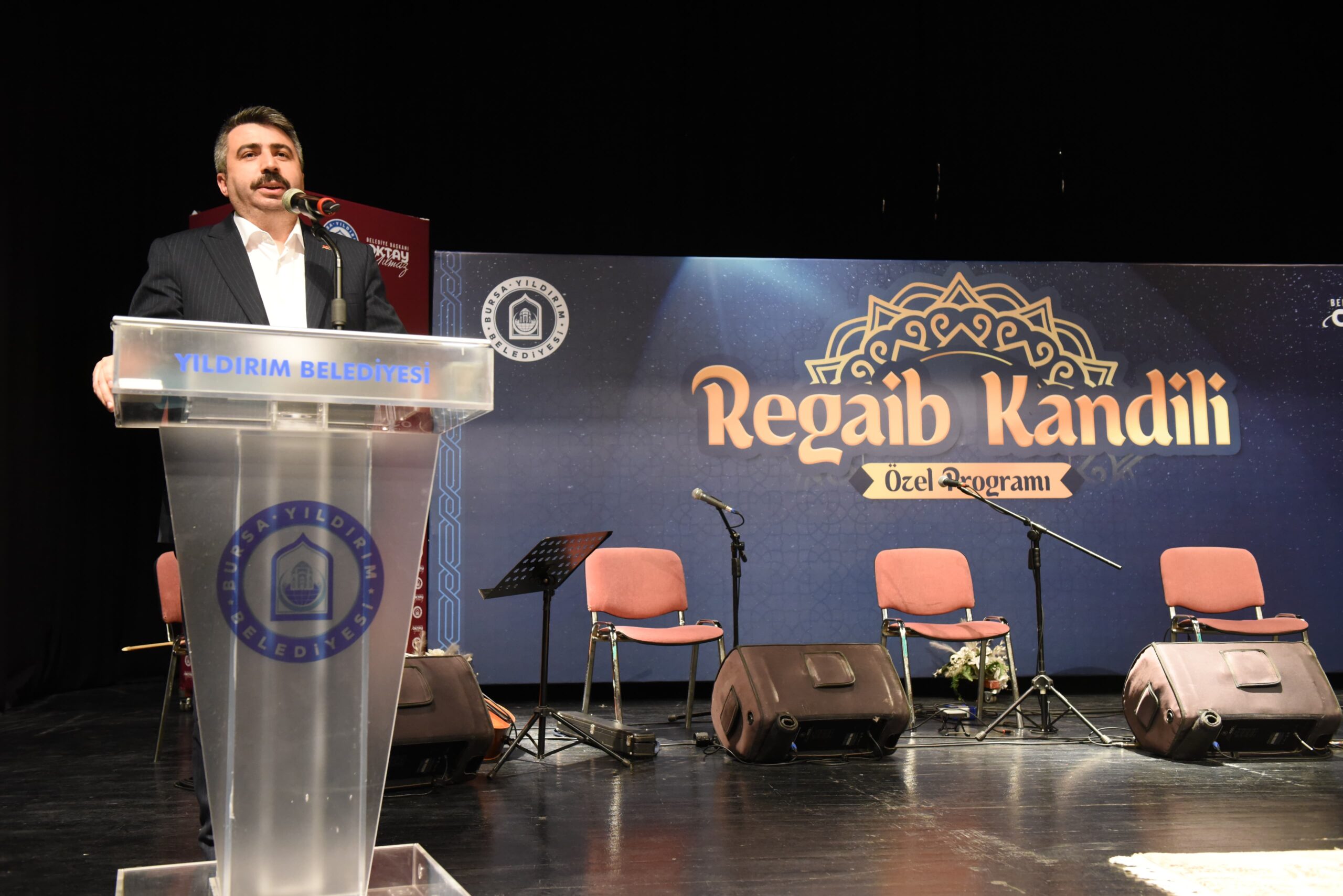 Manevi bir yenilenme mevsimi olan mübarek üç aylara bir kez daha kavuşmanın sevinç, huzur ve mutluluğunu yaşadıklarını ifade eden Yıldırım Belediye Başkanı Oktay Yılmaz, “Sonu bayrama çıkan kutlu bir mevsim içine girmiş bulunuyoruz. Üç aylar, manevi coşkunun daha yoğun yaşandığı, sarsılan ruhi dünyamızı ve kalbimizi onaracağımız, hayatımızı yeniden gözden geçirmemize vesile olan bir gönül iklimi, kalplerimizi dinleme zamanı, rahmet, mağfiret ve merhamet mevsimidir. Tüm hemşehrilerimizin mübarek üç aylarını ve Regaib Kandili’ni tebrik ediyor; üç ayların gelişiyle birlikte gönüllerimizi itminana kavuşturan rahmet, mağfiret ve bereket ikliminin, ülkemizden başlayarak dalga dalga tüm insanlığı kuşatmasını, İslâm dünyasında akmaya devam eden kanın bir an önce durması; insanlığın ortak huzurunu tehdit eden terör, şiddet, savaş ve düşmanlığın yerini barış ve huzura bırakması; rağbetlerimizin iyiye, güzele ve doğruya yönelik olması ve bu aylarda yapacağımız ibadet ve duaların kabul olmasını diliyorum” dedi.