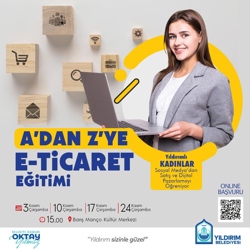 E- ticaret alanında girişimcilik planı olan Yıldırımlı kadınlara ücretsiz ‘e- ticaret eğitimi’ düzenleyecek olan Yıldırım Belediyesi, girişimci kadınlara e-ticaretin püf noktalarını öğreterek, iş dünyasına adım atmalarını sağlayacak. Dijital pazarlama uzmanları tarafından verilecek, ‘e- ticaret eğitimi’ ile Yıldırımlı kadınlar sosyal medyadan satış yapma ve dijital pazarlama alanında kendilerini geliştirebilecekler.