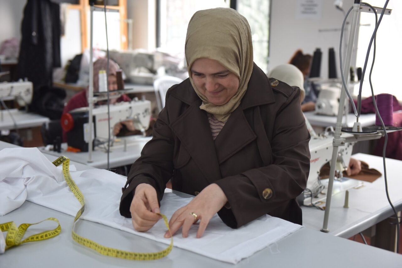 Yıldırım Belediyesi’nin Sosyal İnovasyon ve Girişimcilik Merkezi’nde hünerli eller için hayata geçirdiği kadın eğitim ve girişimcilik merkezlerinde eğitimler devam ediyor. Kurslara katılan kadınlar, usta öğreticilerden aldıkları eğitimlerle dikiş ve nakışın inceliklerini öğreniyor. Haftanın 6 günü devam eden eğitimlerde, ortaya çıkan el emeği göz nuru ürünler, belediyenin pazar alanlarında açtığı stantlarda görücüye çıkıyor. Kurslarda birlikte çalışarak üretim yapan kadınlar hem sosyalleşiyor hem de aile ekonomisine katkı sağlıyor.