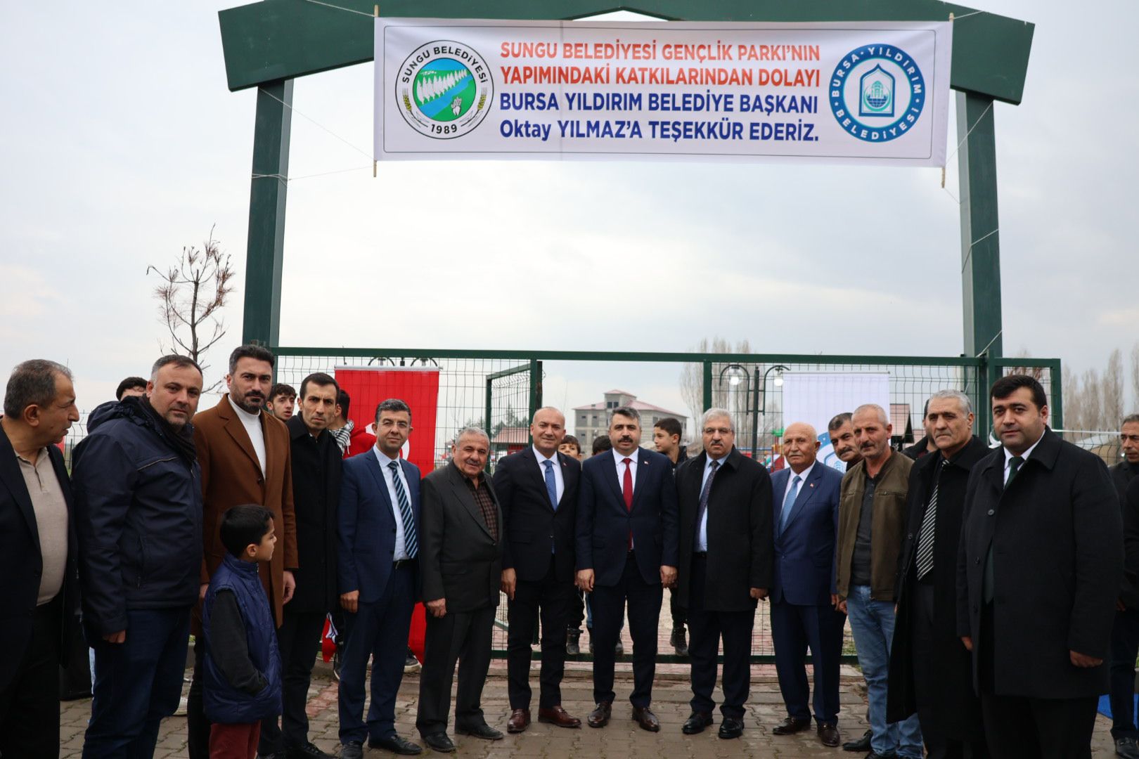 Açılış töreninde konuşan Yıldırım Belediye Başkanı Oktay Yılmaz, “Sungu Gençlik Parkı’nın kardeş ilçemize hayırlı olmasını diliyorum” dedi.