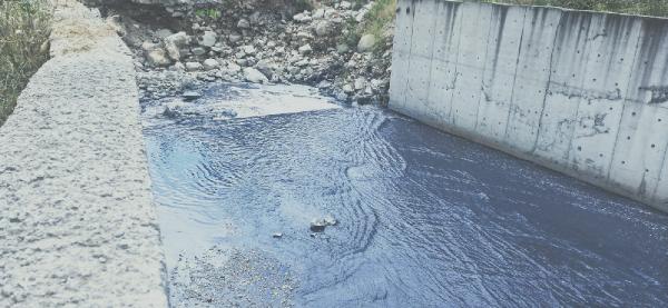 Sanayi bölgesindeki yağmur suyu kanalı, bırakılan atıklar nedeni ile mavi renge büründü.