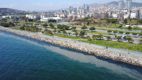 Sahili saran ve dibe çöktüğünde deniz canlıları için büyük tehlike oluşturan deniz salyası havadan da görüntülendi.