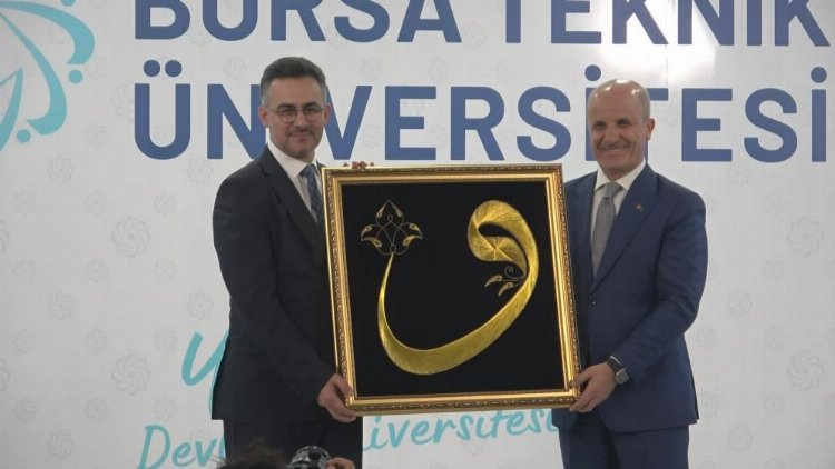 Konuşmanın ardından BTÜ Rektörü Prof. Dr. Naci Çağlar, YÖK Başkanı Prof. Dr. Özvar’a hediye takdim etti.