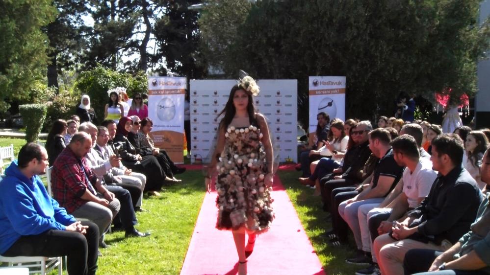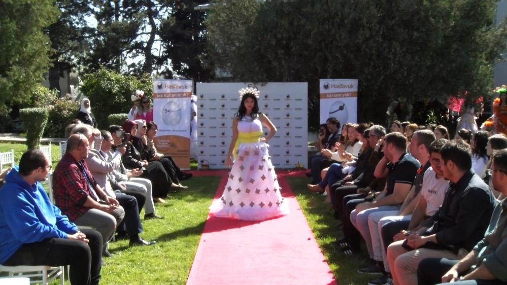 Hastavuk her yıl Ekim ayının ikinci Cuma günü tüm dünyada kutlanan Dünya Yumurta Günü’nde anlamlı bir etkinliğe imza attı. Yumurtanın besleyici değerine, faydalarına dikkat çekmek, tüketimi arttırmak ve teşvik etmek için kutlanan güne bir anlam daha katarak çevre kirliliği ve su krizine dikkat çeken Hastavuk, tavuk tesisinde tavuk atıklarından defile gerçekleştirdi. Zübeyde Hanım Mesleki ve Teknik Anadolu Lisesi Moda Tasarım ve Çocuk Gelişimi öğrencileri kendi hayal güçlerini kullanarak boyanmış tavuk tüyleri, kesilmiş yumurta violleri, yem çuvalları, yumurta kabukları gibi pek çok atık kullanarak kıyafet tasarladı. Öğrencilerin 1 ay boyunca emek sarf ederek hazırlandığı defile izleyicilerden büyük beğeni topladı.