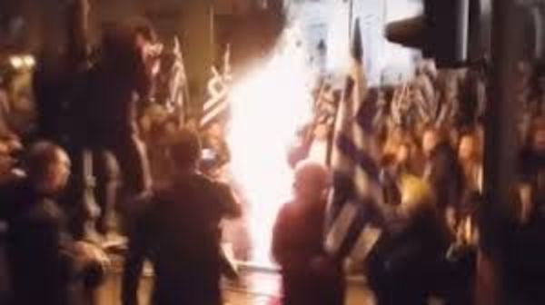 AA’nın aktardığı habere göre; konsolosluğun önünde slogan atmaya devam eden ve Yunan milli marşını söyleyen göstericiler burada bir Türk bayrağı daha yaktı.