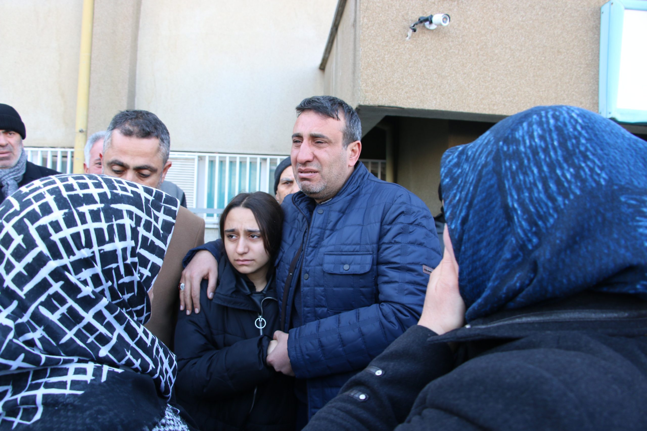 Acılı baba Turgut Elidar, depremden önce yan sitede oturan teyzesinin evine gittiği için çöken binanın altında kalmaktan son anda kurtulan kızı Gizem’e sıkıca sarılarak eşi ve oğlunun cenazelerini morgdan aldı. Aynı araca konulan cenazeler, defnedilmek üzere Maden ilçesine bağlı Gezin Beldesi Kızıltepe köyüne götürüldü. Acılı baba Turgut Elidar, morgdan çıkarılan tabutların arkasından yürürken gözyaşlarına hakim olamadı. Birbirlerine sarılarak yürüyen baba ve kızını, yakınları yalnız bırakmadı. Baba ve kızına sarılan yakınları da uzun süre gözyaşları döktü.