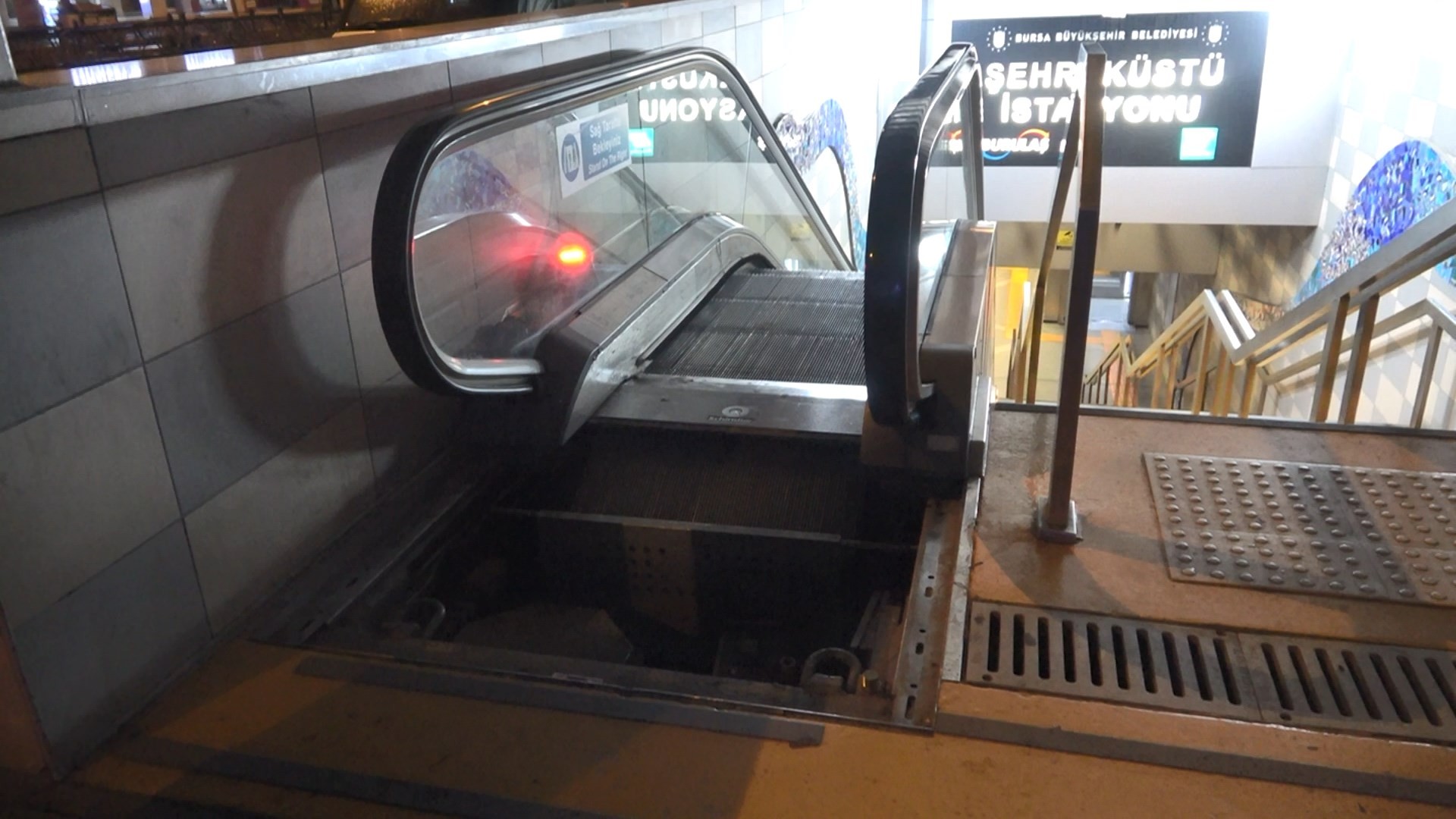 Edinilen bilgiye göre; araçlarıyla gece saati gelen hırsızların hedefi bu kez de metrodaki yürüyen merdivenlerin kuyu kapakları oldu. Yürüyen merdivenin çıkışında bulunan 60 kiloluk kuyu kapaklarını alan hırsızlar arkalarında yaklaşık 1.5 metrelik bir çukur bıraktı. Durumu erken fark eden belediye ekipleri, merdivenleri durdurup etrafına şerit çekerek, muhtemel bir facianın yaşanmasını engelledi.