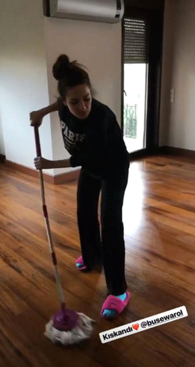 Ünlü çift aile yakınlarının yardımlarıyla taşınacakları evin temizliğini yaptı.Türkücü, o anları sosyal medya hesabından paylaştı.