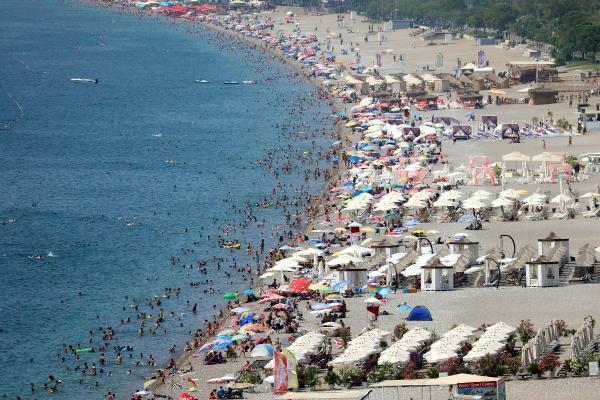Antalya’da sıcaklığın 33, nem oranının yüzde 75, deniz suyu sıcaklığının ise 31 derece seviyelerinde seyretmesi ile tatilciler ile vatandaşlar, Konyaaltı Sahili’nde yoğunluk oluşturdu.
