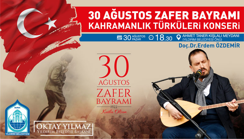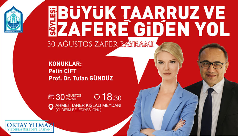 Mustafa Kemal Atatürk’ün 19 Mayıs 1919’da Samsun’da kurtuluş kıvılcımını yakması ve kahraman milletin azmi, inancı, fedakarlıkları ile milli mücadelenin 26 Ağustos 1922’de Büyük Taarruz’un başarıya ulaşması sonucunda kazanılan ‘Büyük Zafer’in 98. yılı, Yıldırım’da coşkuyla kutlanacak. Yıldırım Belediyesi, Büyük Taarruz’un nihai zaferle taçlandığı 30 Ağustos 1922’nin 98. yıl dönümünde, Gazeteci-Yazar ve Televizyon Programcısı Pelin Çift ile Hacettepe Üniversitesi Türkiyat Araştırmaları Enstitüsü Öğretim Üyesi Prof. Dr. Tufan Gündüz’ün katılımıyla gerçekleşecek ‘Büyük Taarruz ve Zafere Giden Yol’ konulu söyleşiye ev sahipliği yapacak. Büyük Taarruz ile kazanılan zaferin detaylarının masaya yatırılacağı söyleşi ile birlikte 30 Ağustos Zafer Bayramı heyecanı, Bursa Uludağ Üniversitesi Devlet Konservatuvarı Yüksekokulu Türk Müziği Anasanat Dalı Öğretim Üyesi Doç. Dr. Erdem Özdemir tarafından gerçekleştirilecek olan ‘Kahramanlık Türküleri Konseri’ ile tamamlanacak. Zafer Bayramı etkinlikleri, 30 Ağustos Pazar günü saat 18.30’da, Yıldırım Belediyesi Ana Hizmet Binası’nın bulunduğu Ahmet Taner Kışlalı Meydanı’nda düzenlenecek.