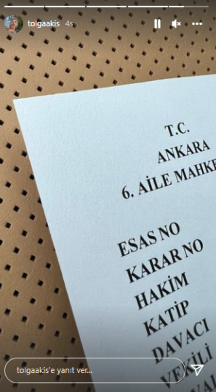 Tolga Akış, Aile Mahkemesi bilgilerinin yazılı olduğu resmi bir belgeyi sosyal medya hesabından paylaştı. Zeynep Bastık ise herhangi bir paylaşımda bulunmadı.