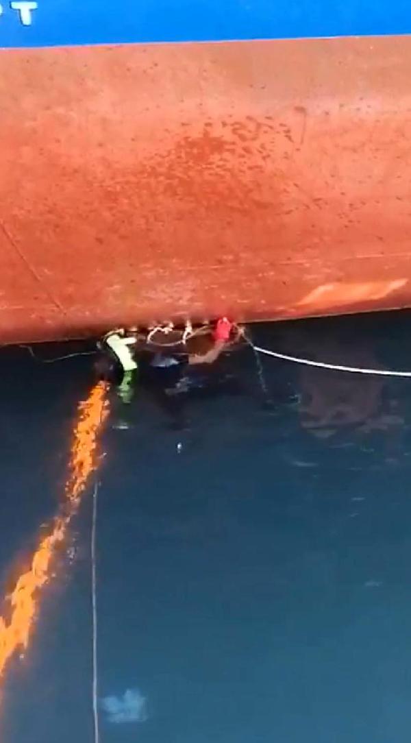 Polis ve Gümrükler Muhafaza ekipleri gemi içinde arama yaparken dalgıç polisler ile Sahil Güvenlik’e bağlı SAT timi de gemi dışında arama yaptı.