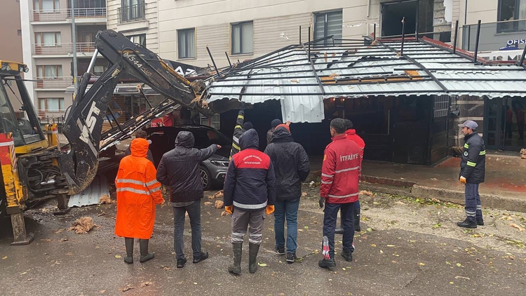 Kent merkezinde ise İncivez Mahallesi Hürriyet Caddesi üzerindeki binanın çatısı, şiddetli rüzgarın etkisiyle araçların üzerine uçtu.